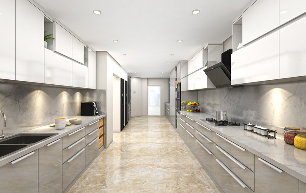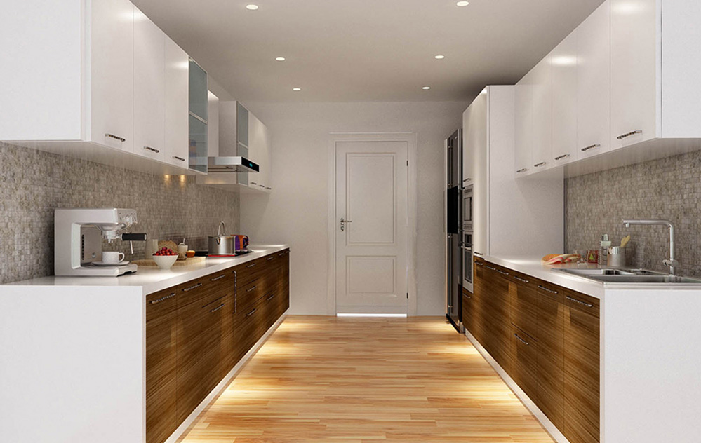 AMOR's Parallel Kitchen makes the most of every inch of space, with innovative storage options and a clean, contemporary design that improves your cooking experience. The proximity of the counters means that everything you need is easily accessible, decreasing preparation time and enhancing efficiency.