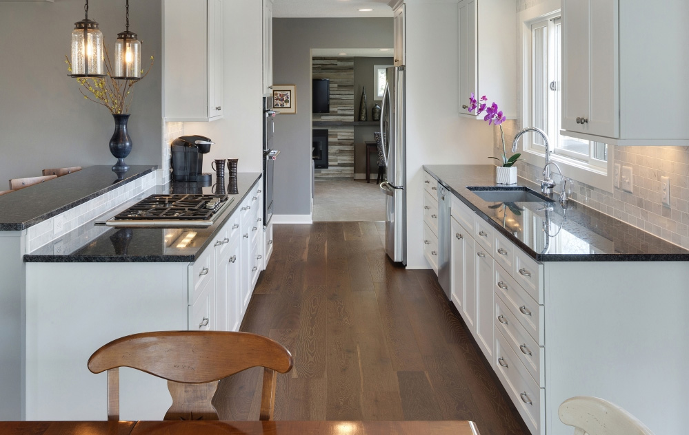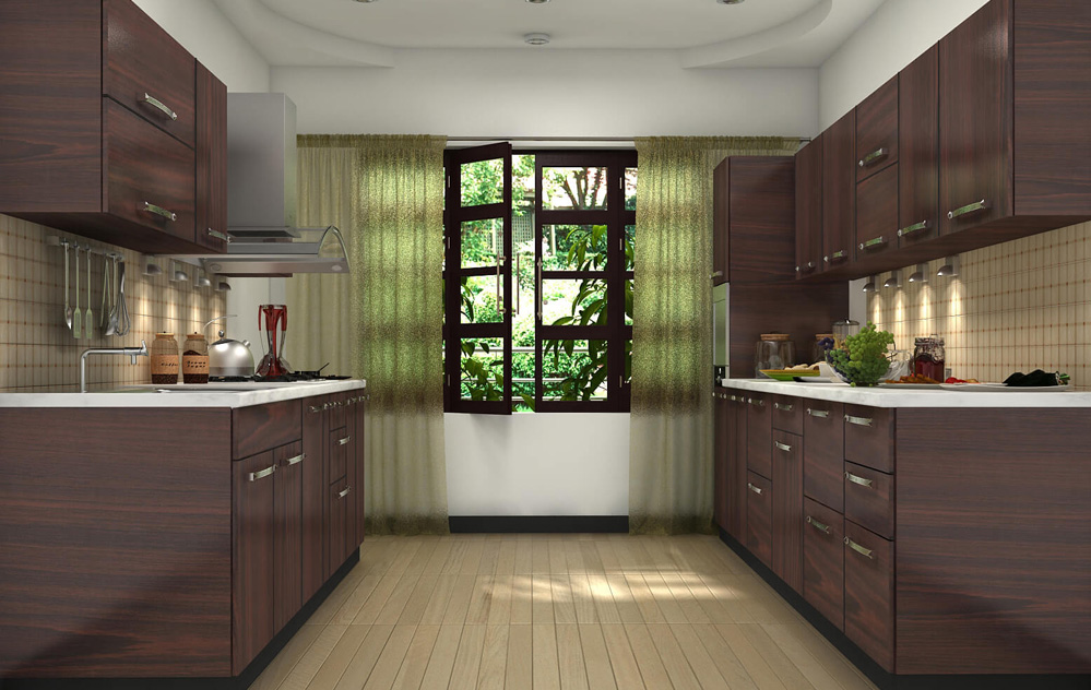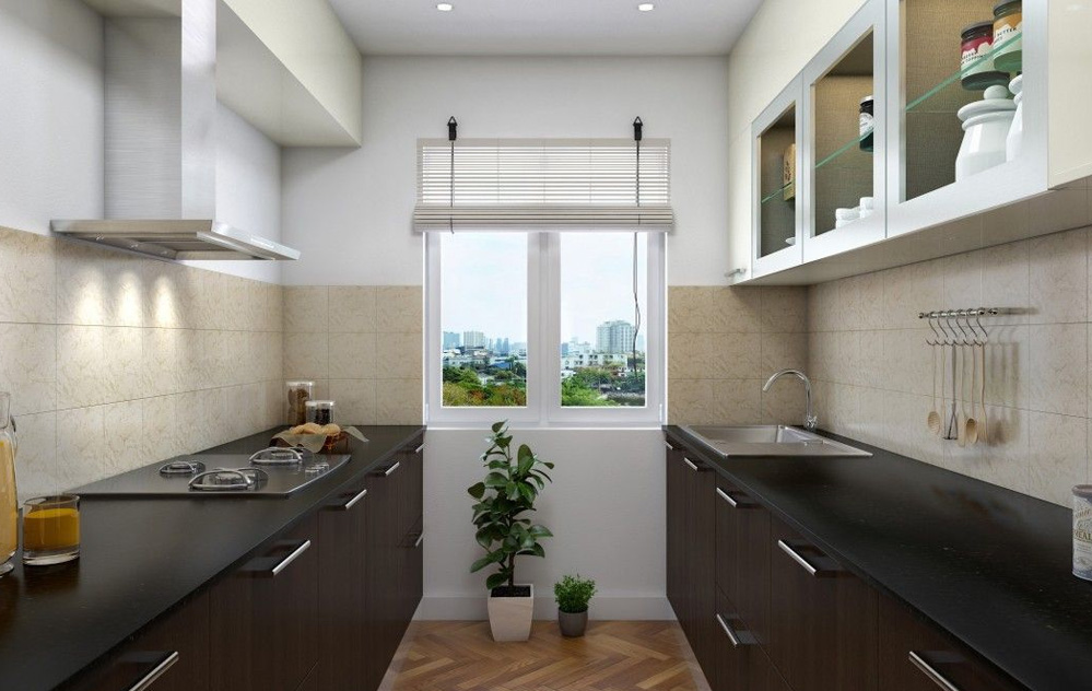 The Parallel Kitchen, often known as the Galley Kitchen, is a classic and practical design ideal for smaller spaces. This concept has two parallel countertops for a faster workflow and quick access to all culinary supplies.