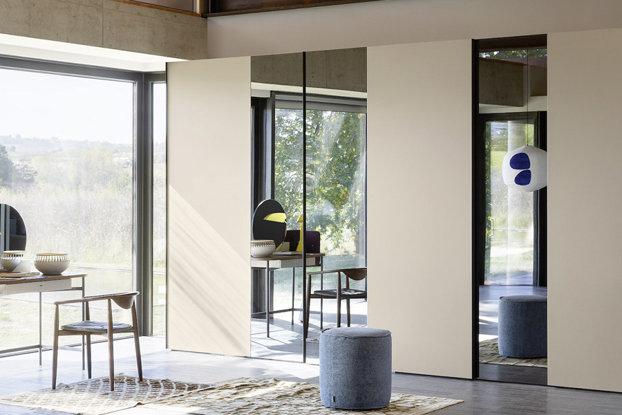 The sleek sliding doors glide softly and silently, lending a touch of modern sophistication to any environment. Our sliding wardrobes, available in a range of finishes and configurations, can be properly tailored to your décor, enabling a smooth integration into your home.